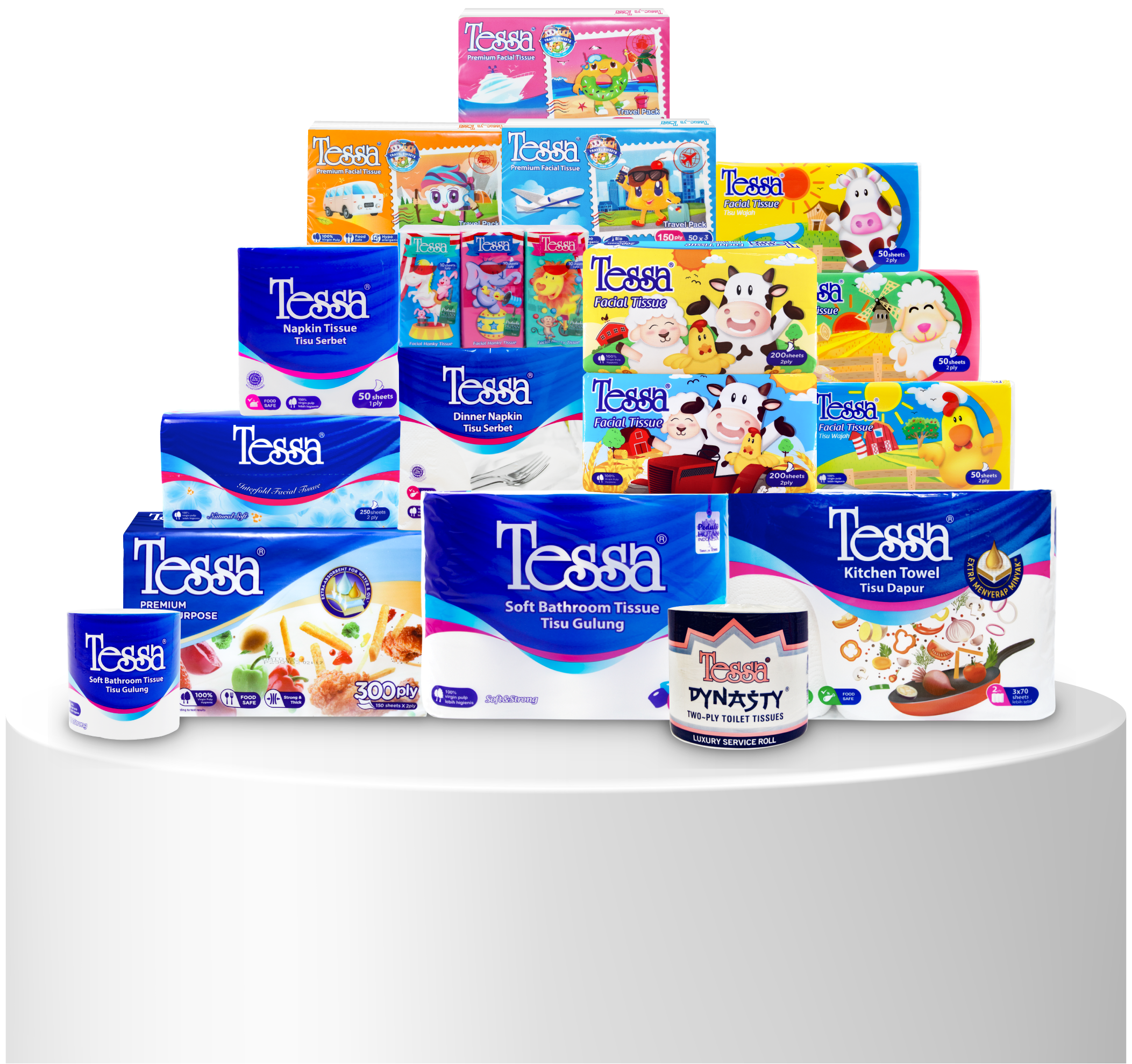 Produk Asli Indonesia sejak tahun 1986 yang senantiasa menjaga kualitas untuk memberikan inovasi terbaik. Terbuat dari 100% serat kayu alami untuk menghasilkan kelembutan di setiap helainya sehingga Tessa menjadi pilihan tepat untuk berbagai kebutuhan.