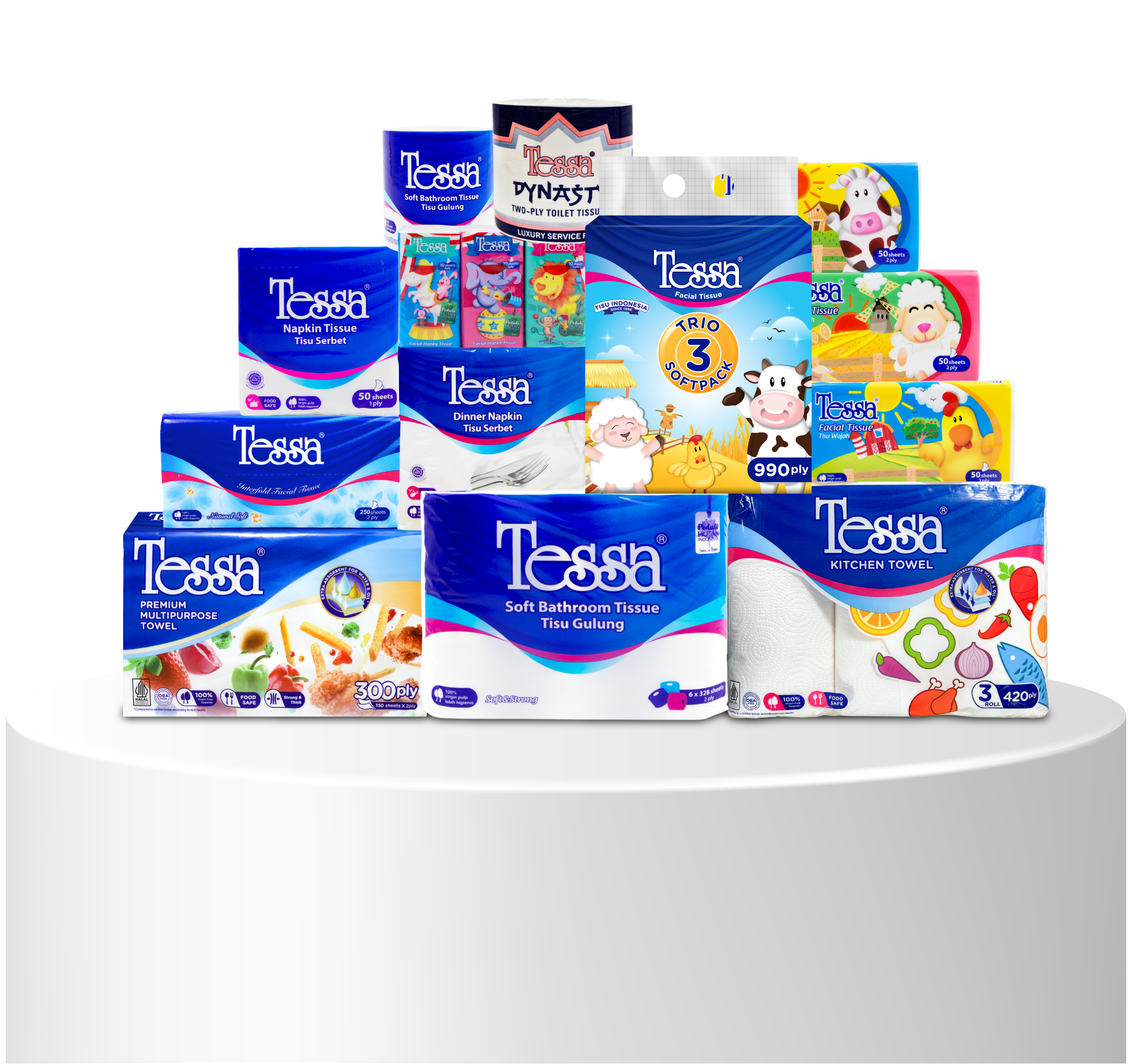 Produk Asli Indonesia sejak tahun 1986 yang senantiasa menjaga kualitas untuk memberikan inovasi terbaik. Terbuat dari 100% serat kayu alami untuk menghasilkan kelembutan di setiap helainya sehingga Tessa menjadi pilihan tepat untuk berbagai kebutuhan.